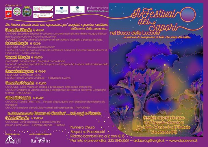 Cene a tema con prodotti locali, degustazioni, musica, teatro, favole e giochi