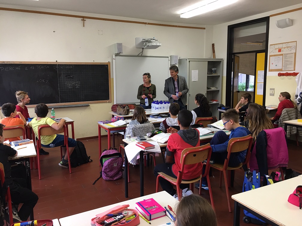 abbiamo consegnato nelle nostre scuole circa 300 borracce, da sostituirsi alle bottigliette di plastica che accompagnano la merenda in classe.