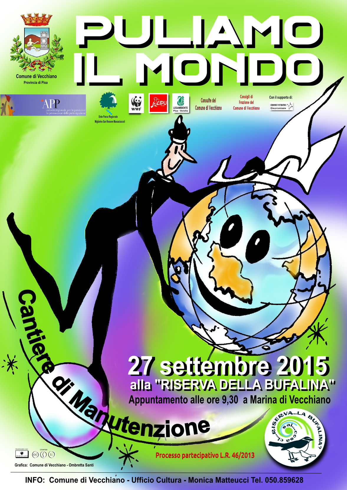 L’evento è inserito nel programma del Progetto Partecipativo “Sai…cosa ci riserva…LA BUFALINA?“, promosso, ai sensi della L.R.46/2013, dall’Amministrazione del Comune di Vecchiano, con il contributo dell’Autorità regionale per la Garanzia e la Promozione della Partecipazione e con l’adesione e la collaborazione dell’Ente Parco MSRM, LEGAMBIENTE Pisa – Versilia, la LIPU – Oasi di Massaciuccoli, il WWF, i Consigli di Frazione del Comune di Vecchiano, le Consulte vecchianesi del Volontariato, del Turismo, dello Sport.