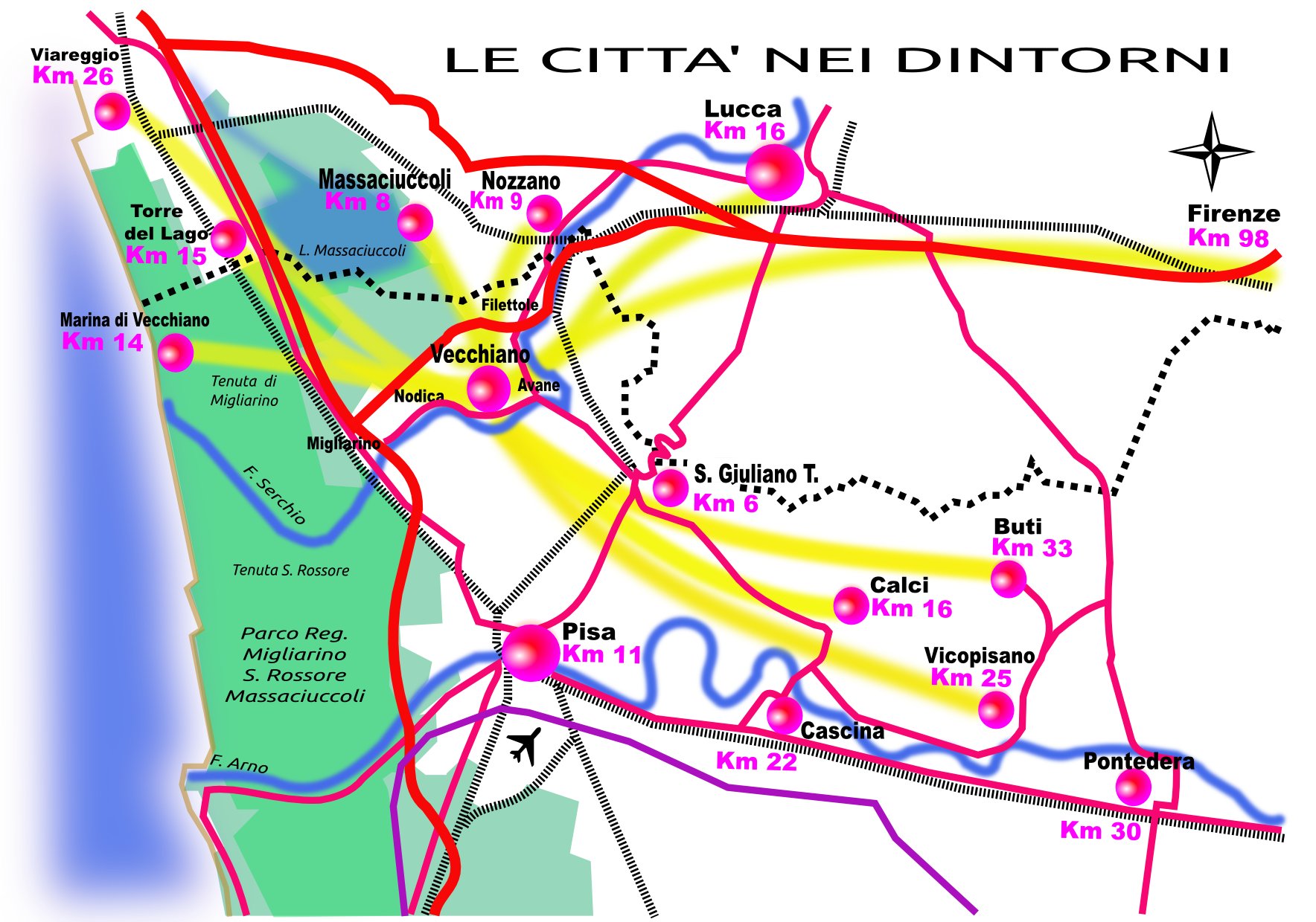 Questi sono i luoghi che puoi agilmente raggiungere da Vecchiano: